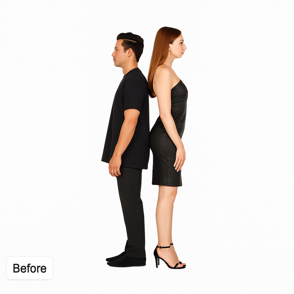 Nope.ELVION LIFT PROis designed to be completely invisible inside your footwear. No weird bulge, no obvious lifts. You’ll look like you — just taller.
